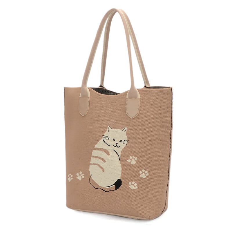 ふり向くネコが可愛いニットトートバッグ 大容量 軽量タイプ